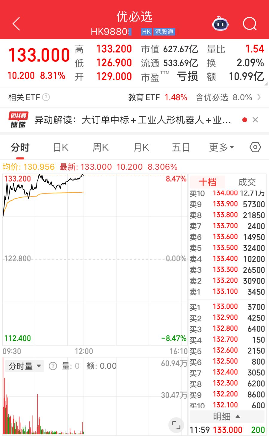 (原标题:再获亿元大单,优必选股价大涨8%,上半年仍亏损)