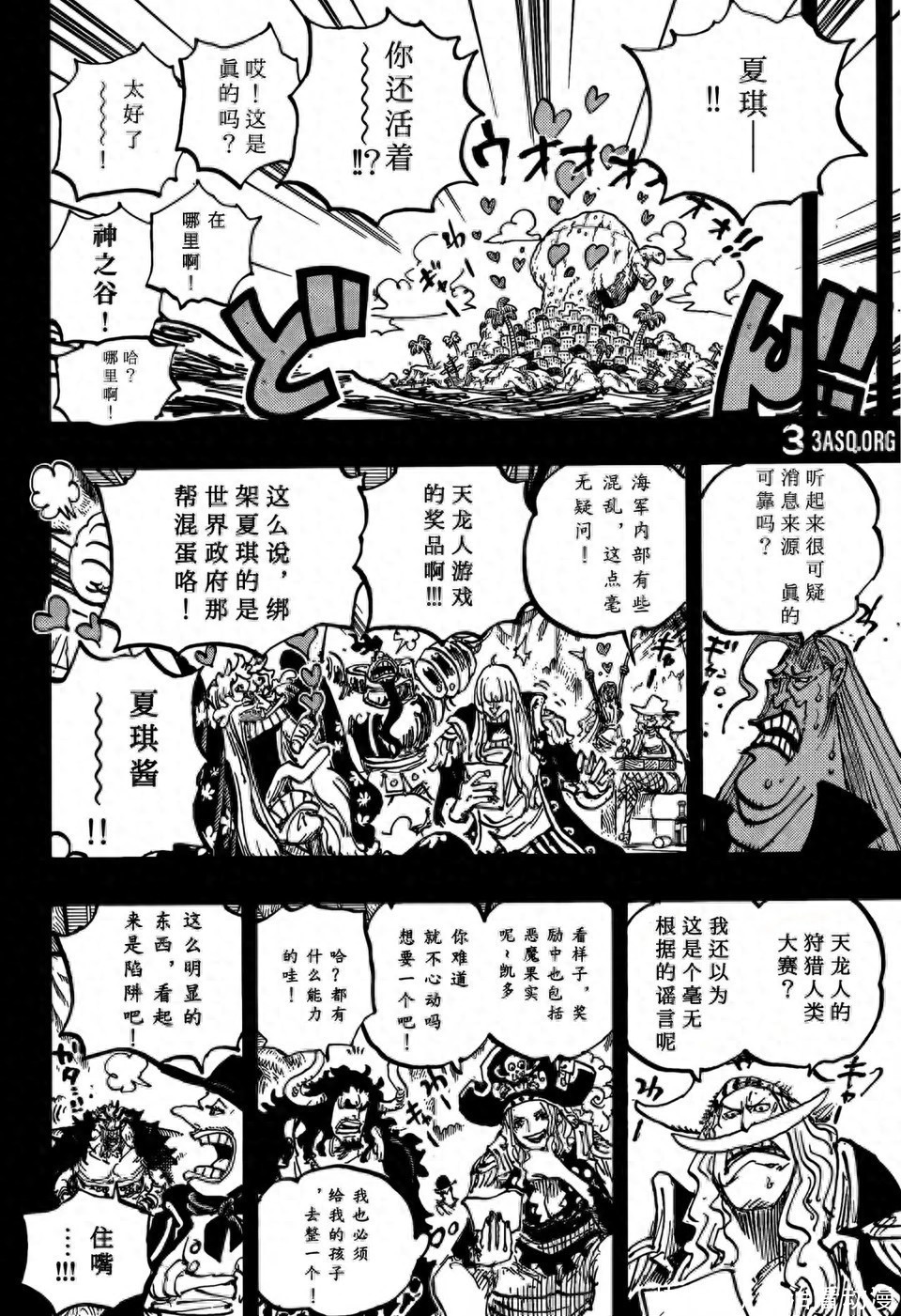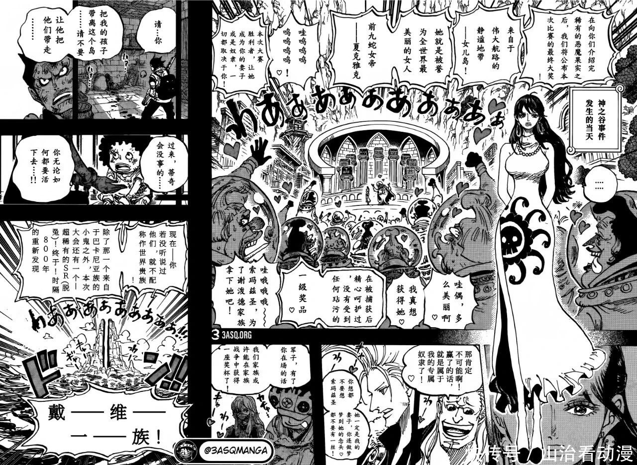 洛克斯海贼团的回忆剧情还没有结束,目前的剧情在神之谷大战,夏琪被天龙人抓住,他们就把夏琪当成奖品。天龙人在神之谷举办狩猎大赛,神之骑士团全员都参与狩猎大赛,谁拿下冠军,谁就可以获得夏琪这个大美女。天龙人根本没有想到,就是一个夏琪引发了一场大战。
